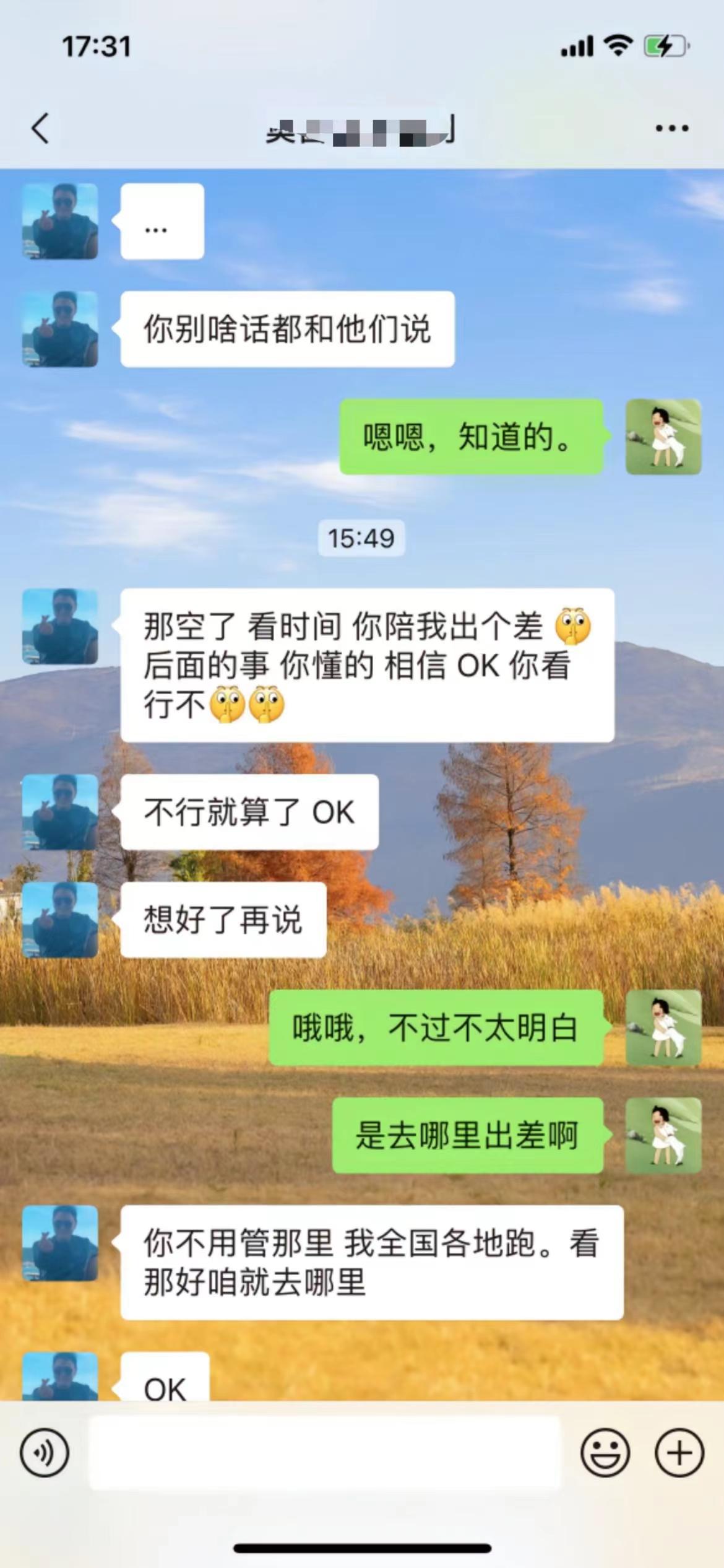 之所以管该公司男领导叫“OK哥”,是因为该男领导很爱说“OK”,发给女下属的微信能够佐证这一点: